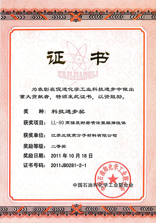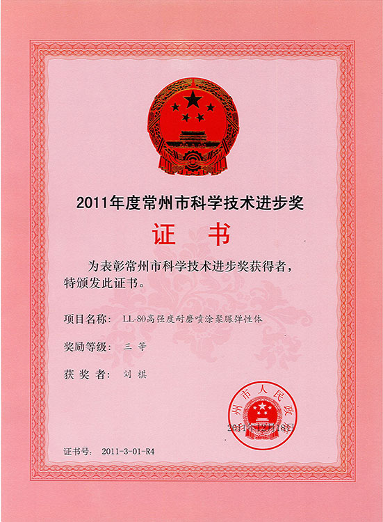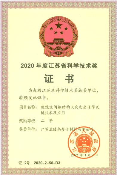 LP3068國家火炬計(jì)劃 聚脲市科技進(jìn)步三等獎 2020年度江蘇省科學(xué)技術(shù)獎證書