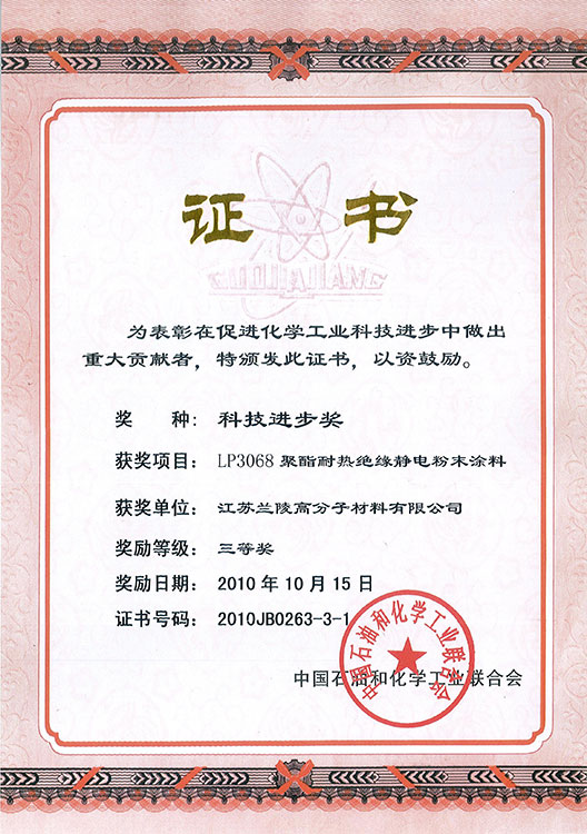 LL-80中石化科技進(jìn)步二等獎 粉末科技進(jìn)步獎證書 低表面處理鋼管用紫外