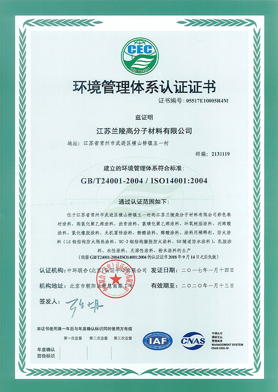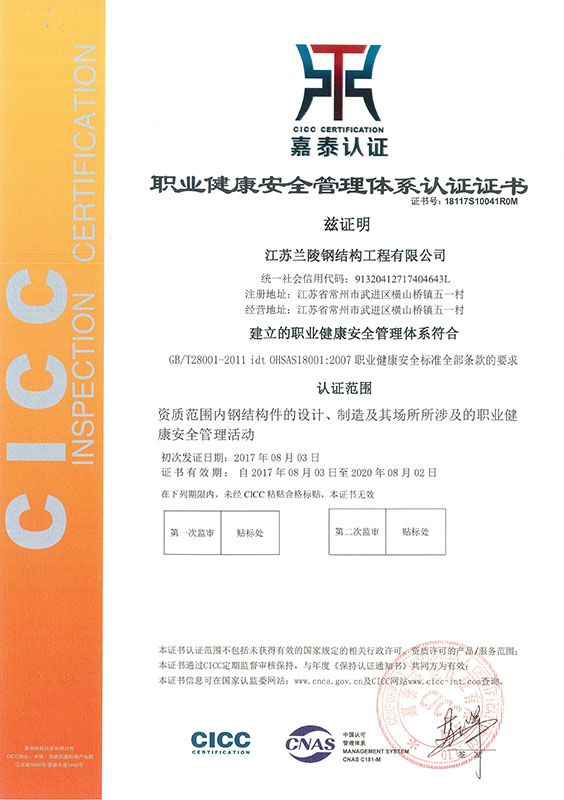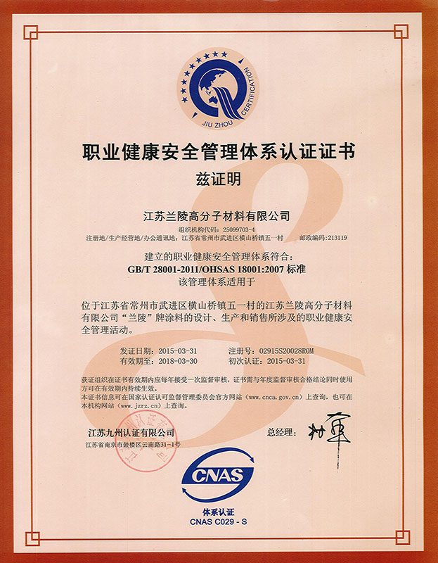 Environmental Management System Certificate (Polymer Company) Occupational Health and Safety (Polymer Company) Environmental Management System Certificate (Steel Structure Company)